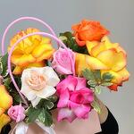 Эвкалипт - 2 шт. Сумка картон - 1 шт. розы - 7 шт.