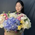 Обворожительная корзина из гортензий, кустовых роз и лизиантусов станет прекрасным подарком для любимого человека. Семь пышных гортензий, десять элегантных лизиантусов и десять роскошных кустовых роз вместе создают изумительную композицию, уместную в любой ситуации. Все цветы аккуратно расположены в прочном кашпо, обеспечивая им заботу и свежесть, а использование флористического оазиса гарантирует длительное сохранение их первозданного вида. Этот товар - идеальный выбор для тех, кто ценит красоту и гармонию в каждой детали.