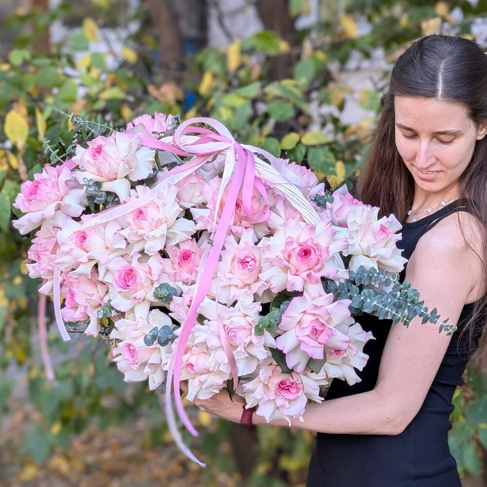 🌸 Роскошная нежная корзина с французскими розами и эвкалиптом 🌺 Только свежие цветы