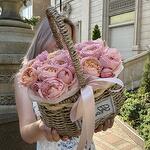 Корзина - 1 шт. Кустовая пионовидная роза - 7 шт.