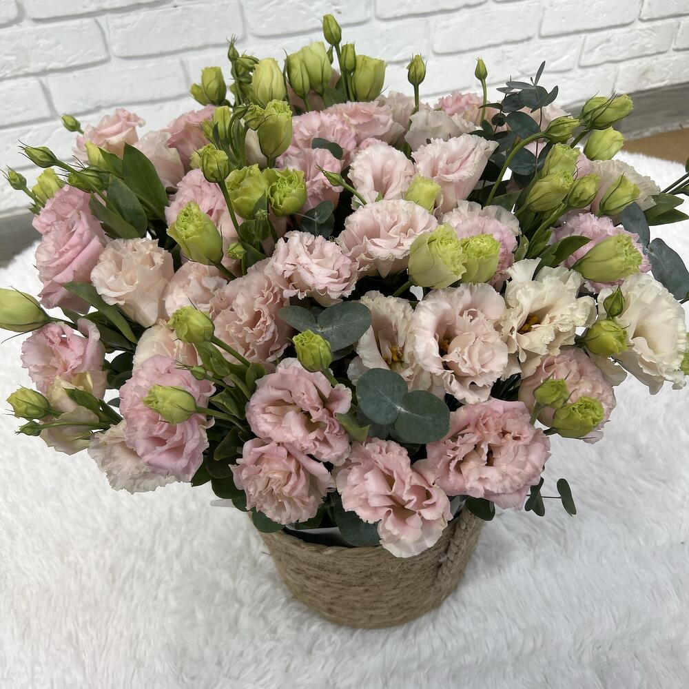 Оазис флористический - 2 шт. кашпо ротанговое - 1 шт. кашпо из лизиантусов - 21 шт.
