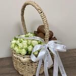 Нежная композиция в корзине, спрей розы в сочетании с вкуснейшей клубникой в шоколаде