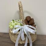 Корзина плетеная - 1 шт. Клубника в шоколаде - 12 шт. Спрей роза - 7 шт.