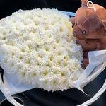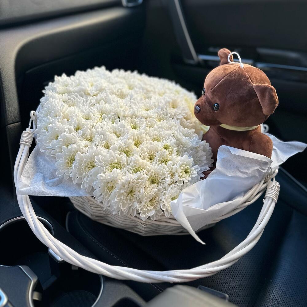 Хризантема кустовая - 20 шт. Мишка плюшевый - 1 шт.