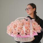 Нежная корзина из раскрытых голландских роз, наполнит вашу комнату теплым весенним настроением и создаст уютную атмосферу!