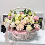 Корзина плетеная - 1 шт. Оазис флористический - 2 шт. эустома микс - 11 шт.
