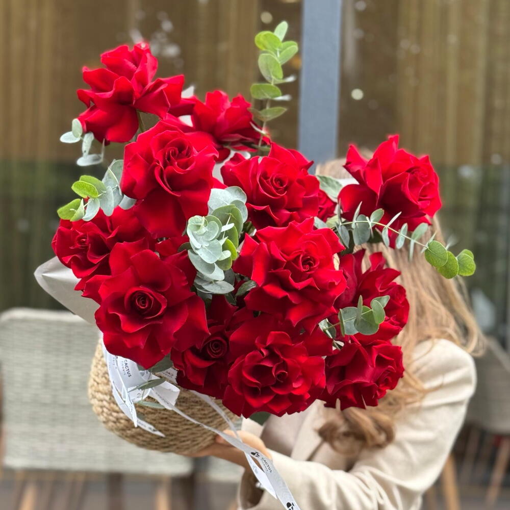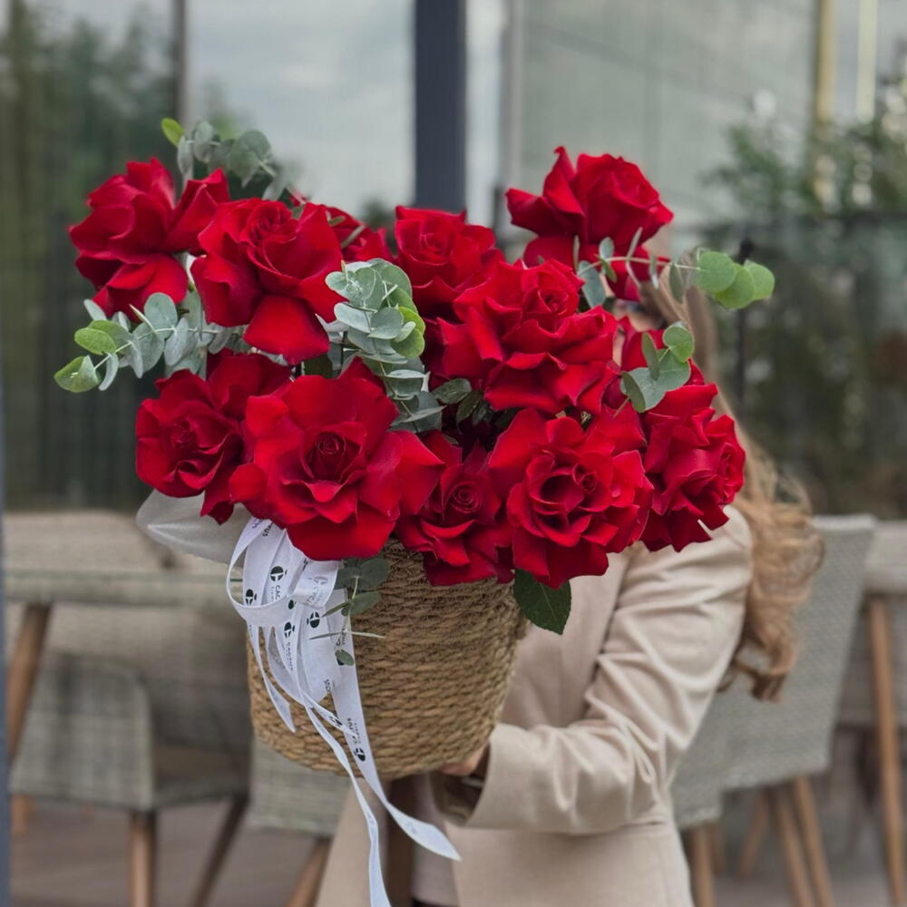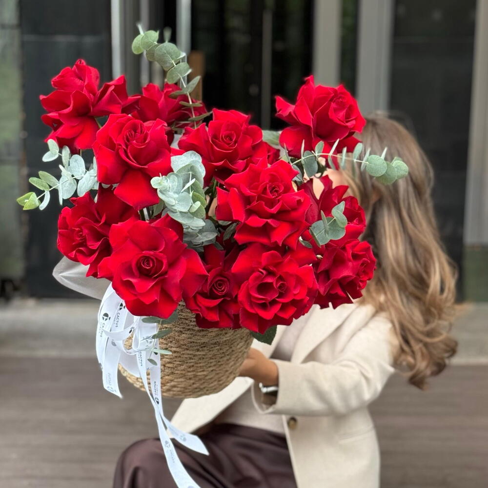 Корзина с французской алой розой