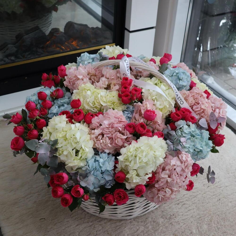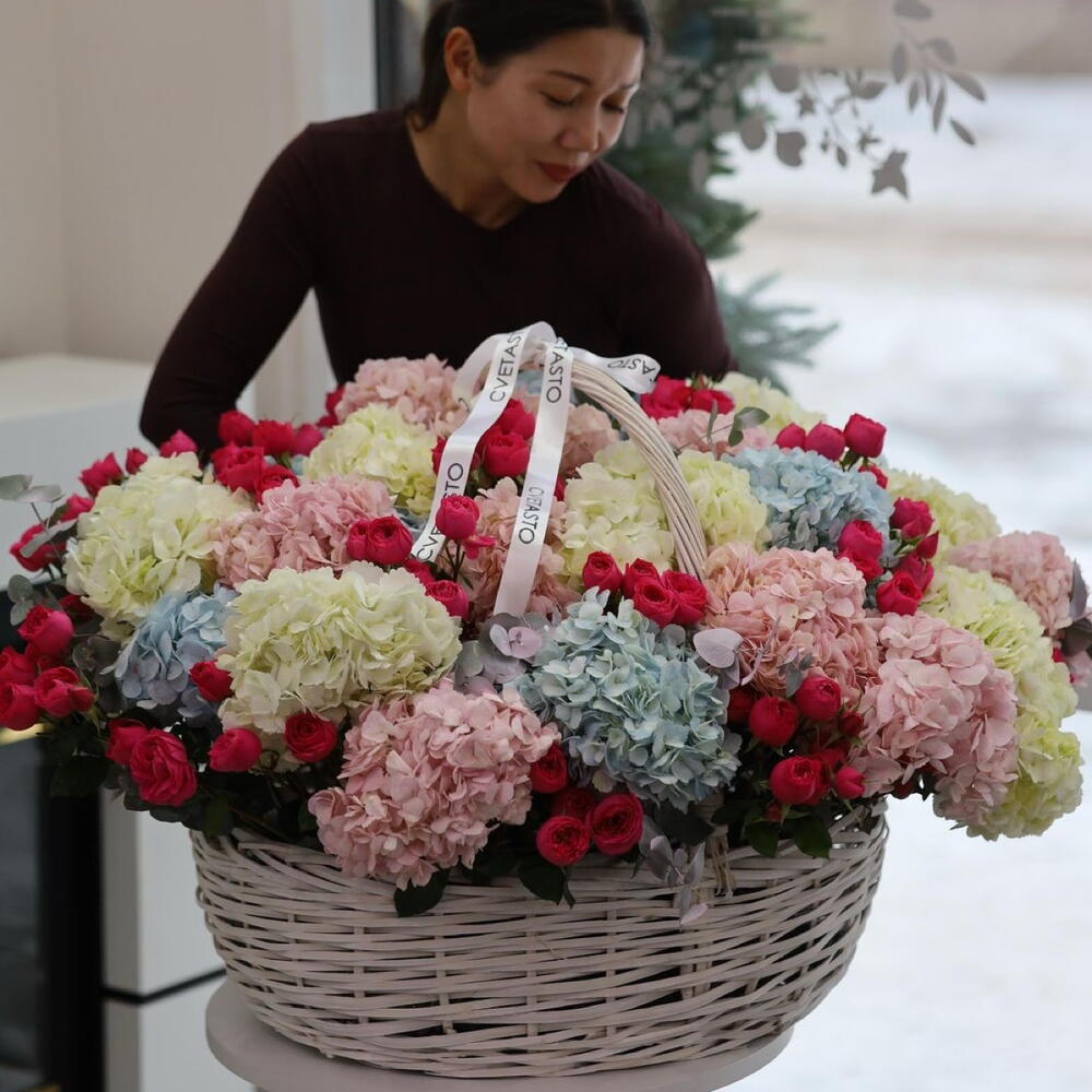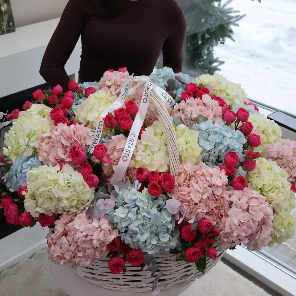 Корзина с гортензией и кустовой розой ХХL