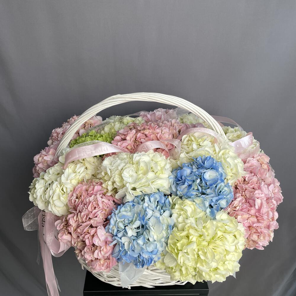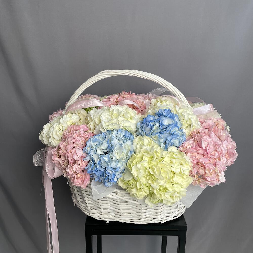Корзина с гортензиями