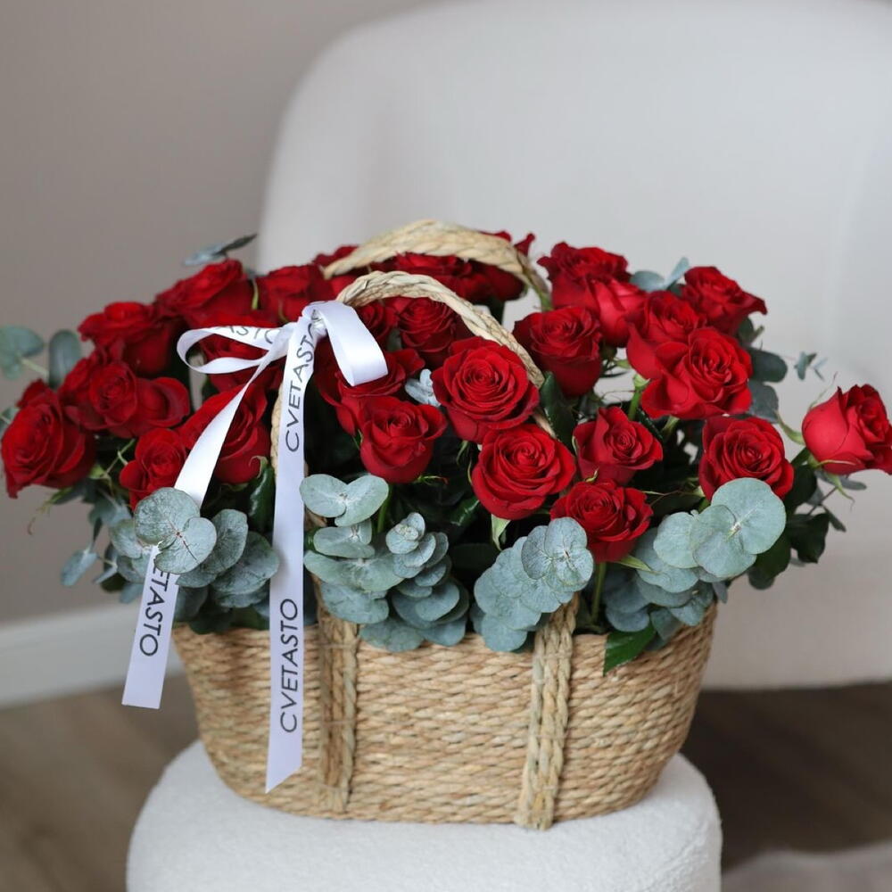 Корзина с красными розами 31 роза