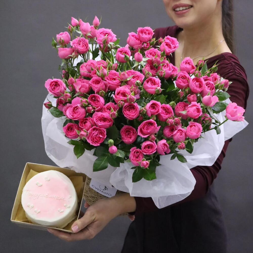 Кустовая роза - 9 шт. бенто торт - 1 шт.