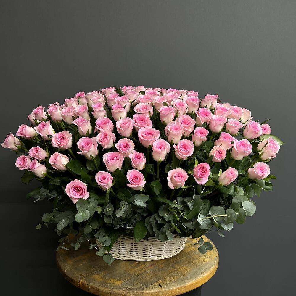Роза - 101 шт. Корзина плетеная - 1 шт.