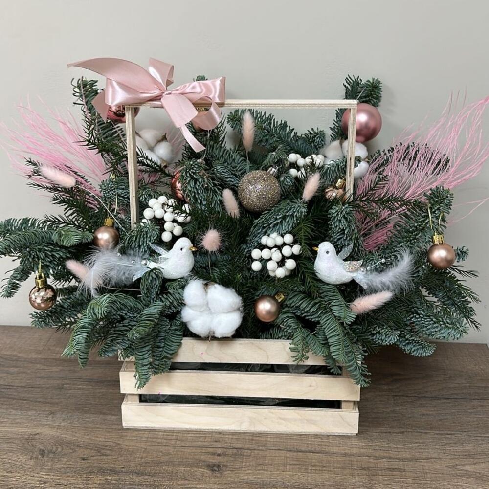 Хлопок - 2 шт. Сухоцветы - 11 шт. Лагурус - 7 шт. Игрушки елочные - 15 шт. нобилис (ель голубая) - 9 шт.