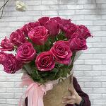 Лента атласная - 2 шт. Кашпо - 1 шт. Оазис флористический - 2 шт. зелень фисташка - 5 шт. розы эквадор (60 см) - 25 шт.
