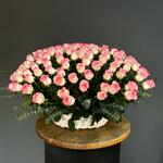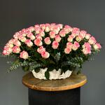 Корзина с розами сорта «Джумилия» 101шт с эвкалиптом