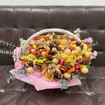 Эвкалипт - 6 шт. Диантус - 3 шт. Киви - 200 гр. Грецкий орех - 200 гр. Дыня - 200 гр. Инжир - 500 гр. Пастила - 200 гр. Вишня - 200 гр. Курага - 300 гр. Манго сушеный - 200 гр. макадамия - 200 гр. финики королевские - 200 гр. пекан в скорлупе - 200 гр. манго кубиками - 200 гр.