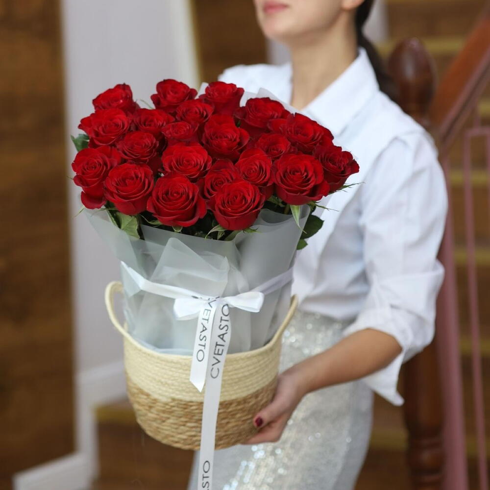 Корзина с высокими красными розами