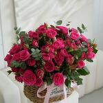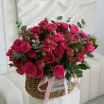 Эвкалипт - 1 шт. Корзина плетеная - 1 шт. Спрей роза - 13 шт.