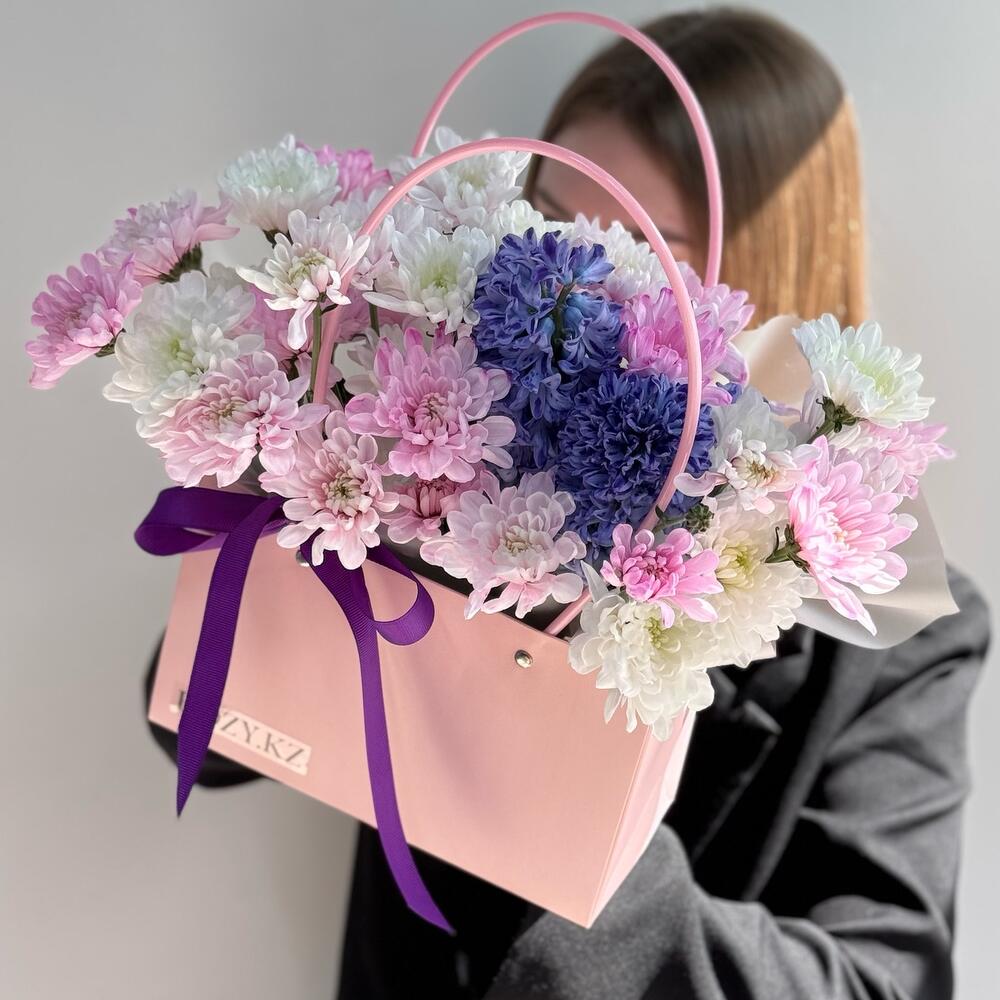 Гиацинт - 3 шт. Хризантема кустовая - 3 шт. Сумочка - 1 шт.