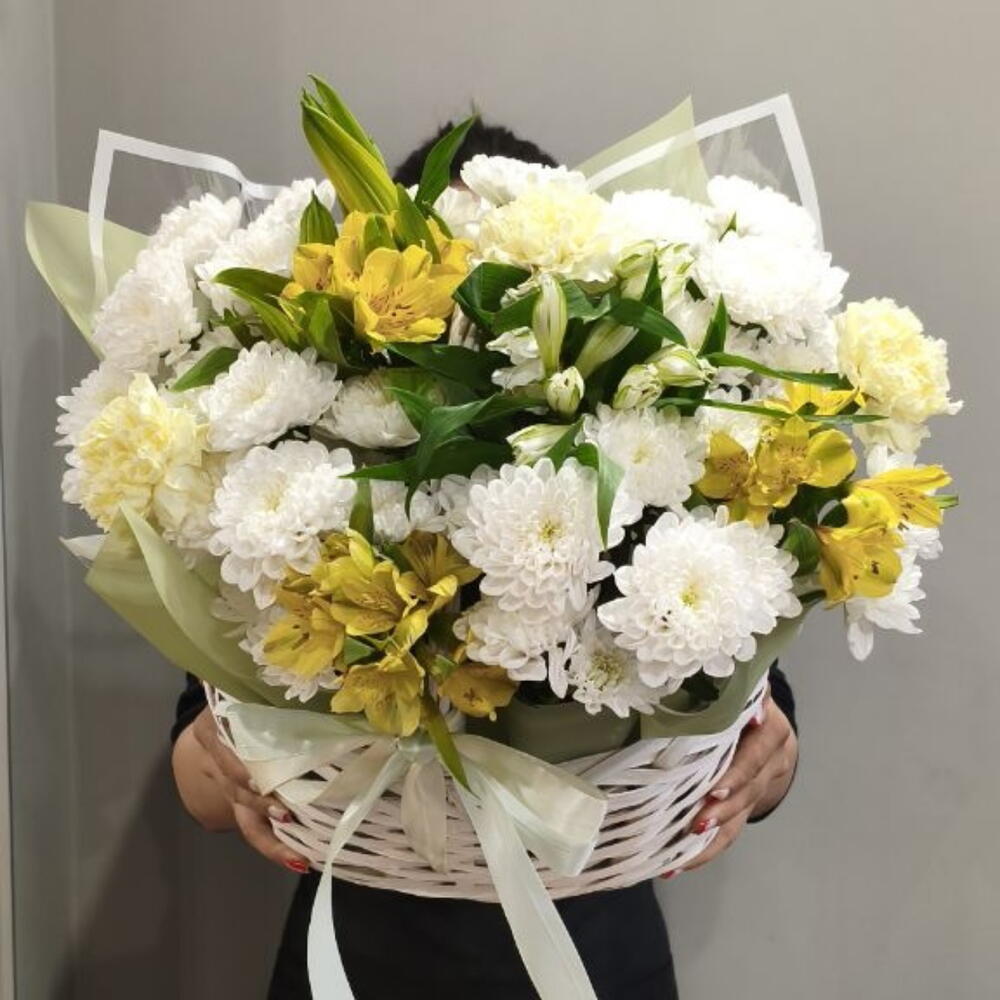 Альстромерия - 5 шт. Лилия - 1 шт. Хризантема кустовая - 5 шт. Диантус - 3 шт.