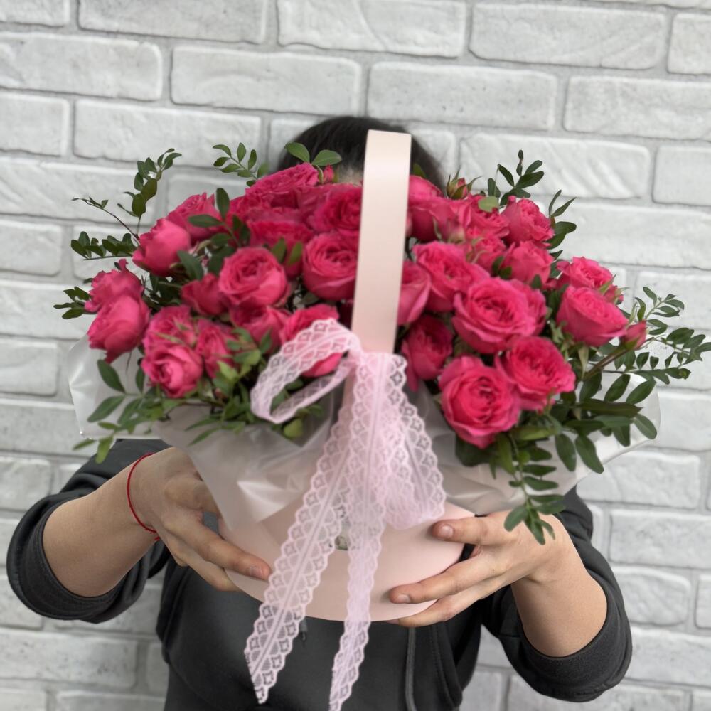 Лента - 1 шт. Писташ - 3 шт. Спрей роза - 7 шт. корзинка картонная - 1 шт.