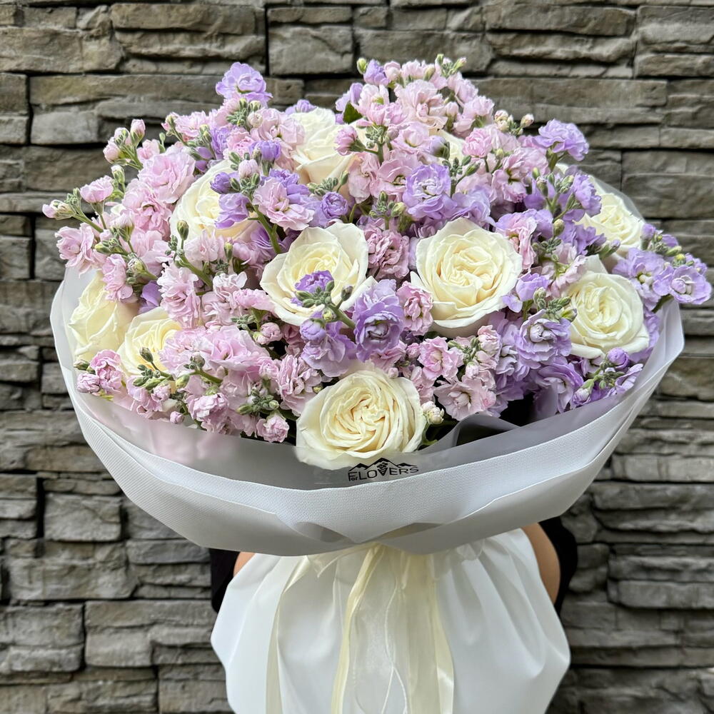 Невероятная ароматная маттиола, и качественные голландские белые розы. Вау букет обеспечен !:)