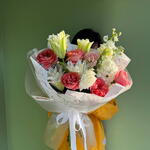 Лилия - 2 шт. Роза - 5 шт. эустома розовая - 2 шт. Маттиола Белая - 2 шт.