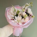 Анемон - 1 шт. Маттиола - 2 шт. Эустома - 5 шт. Лилия Белая - 1 шт. Гербера Микс - 1 шт.