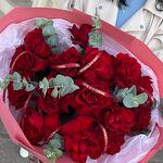 Эвкалипт - 2 шт. Упаковка дизайнерская - 1 шт. роза кения - 15 шт.