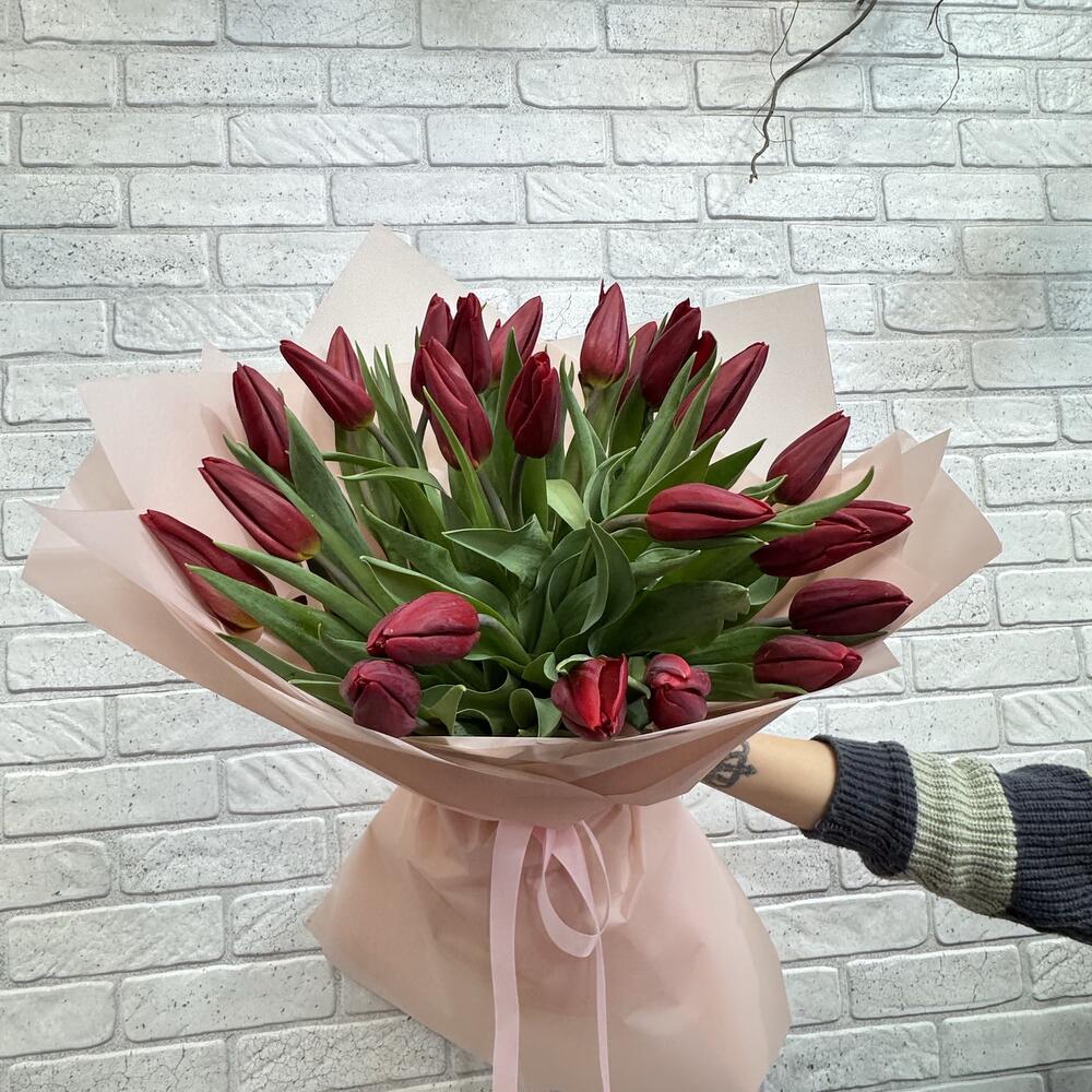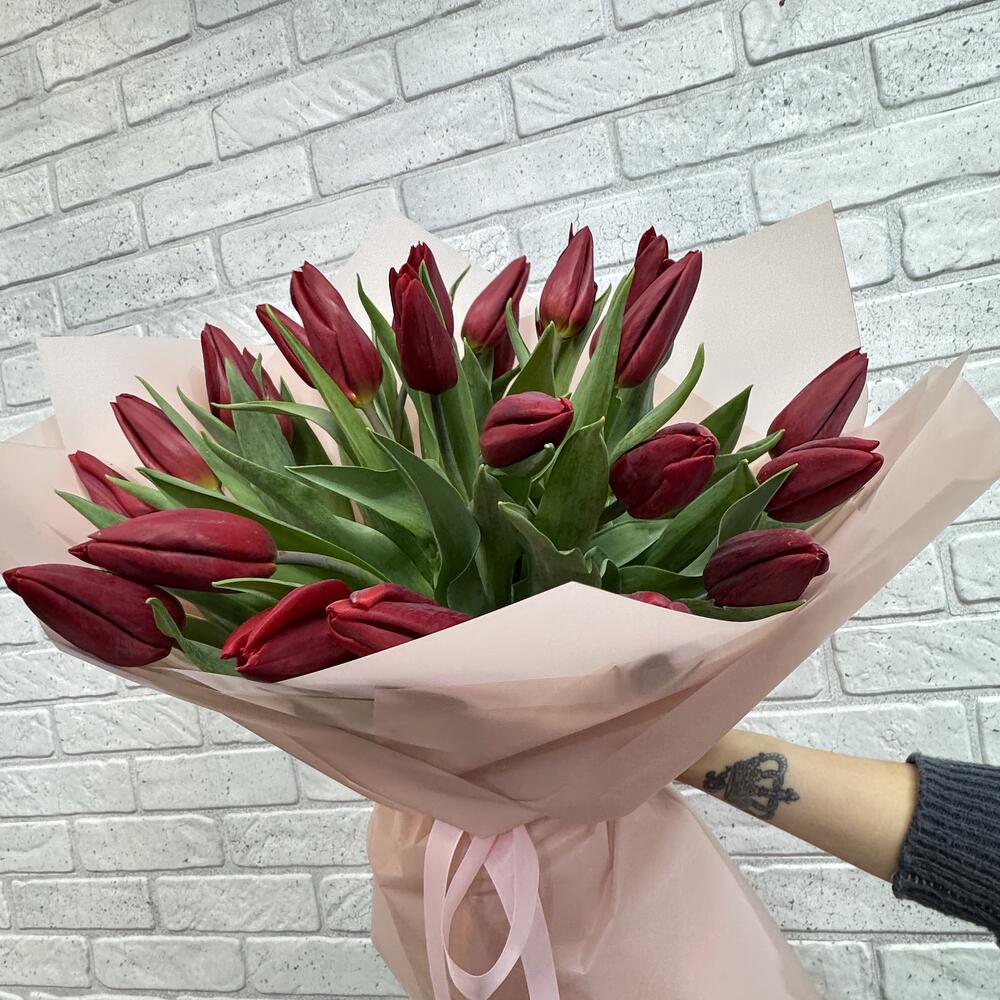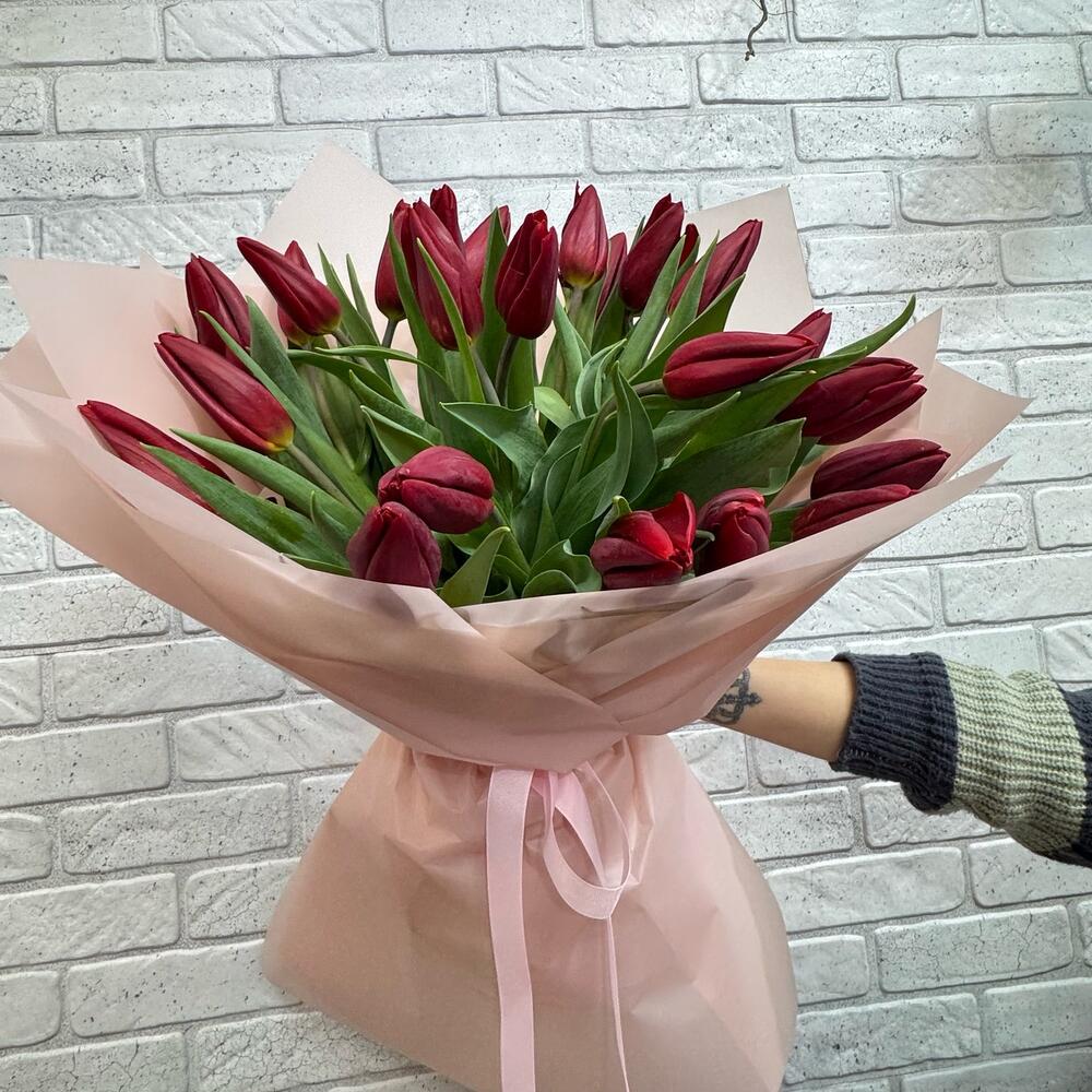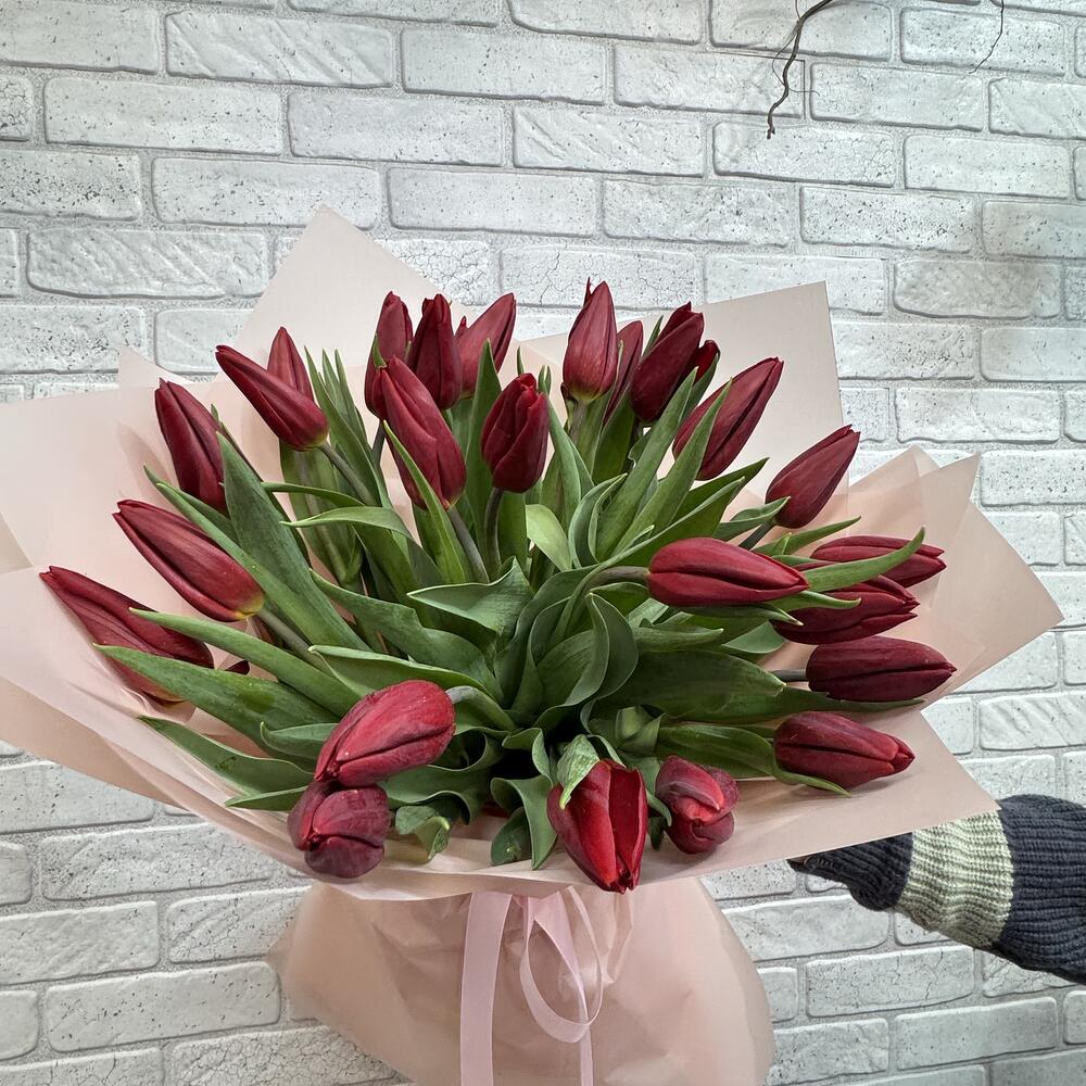 Тюльпан - 25 шт. Бумага - 6 шт. бант атласный - 1 шт.