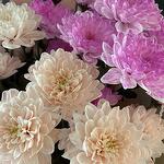 Прекрасный букет из чудесных хризантем. Открытка с пожеланиями подчеркнет важность момента