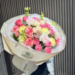 Лизиантус - 3 шт. Озотамнус - 3 шт. Роза - 5 шт. Диантус - 3 шт. Ранункулюс - 3 шт. Спрей роза - 5 шт. Фоамиран (упаковка) - 3 шт.