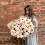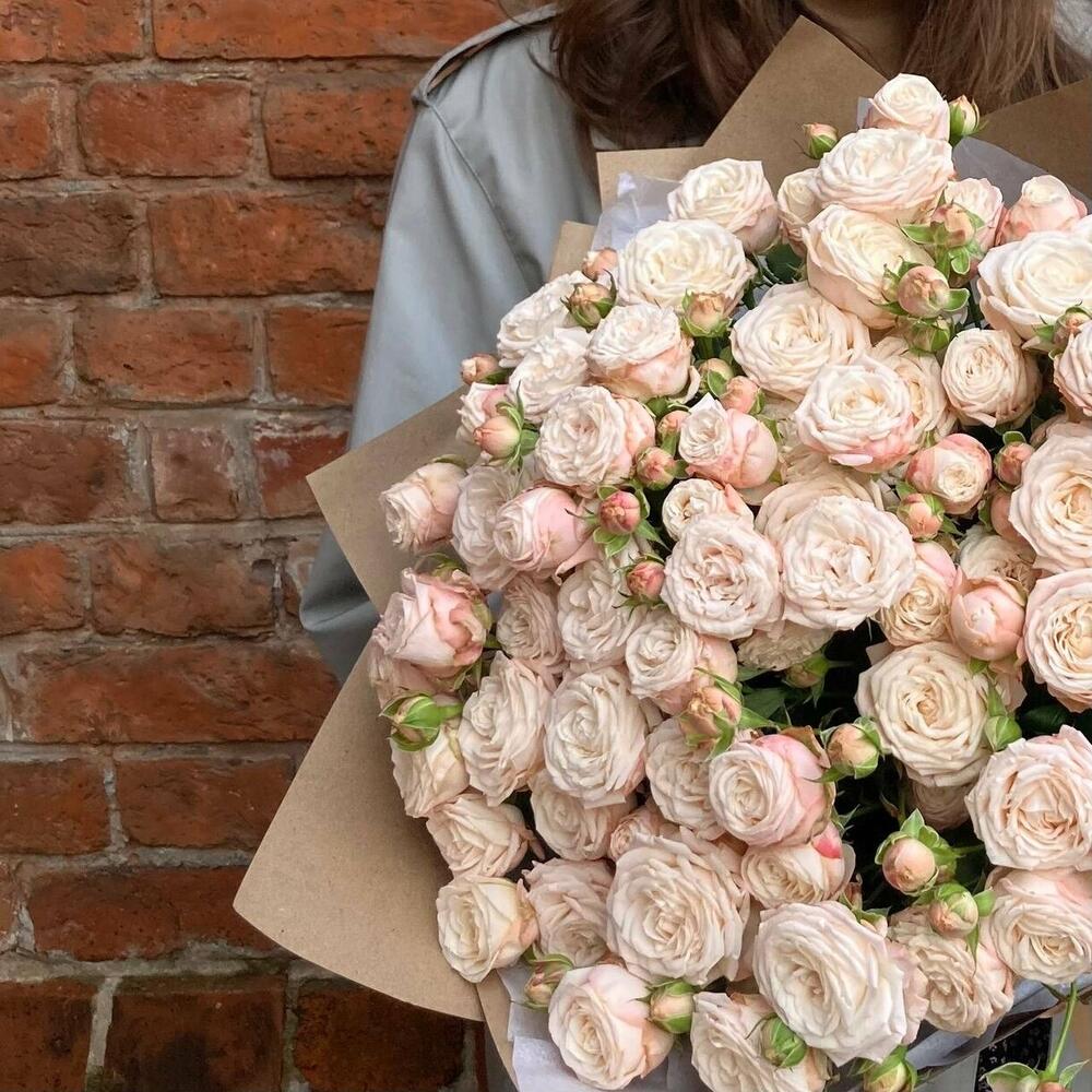 Нежная охапка кустовых пионовидных роз бомбастик.