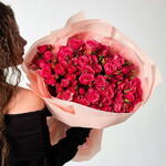 Нежный и в то же время эффектный букет из розовых кустовых роз покоряет своей пышностью и романтичным настроением. Множество бутонов создают ощущение воздушного облака, наполненного теплом и заботой. Розовый оттенок символизирует искренность, нежность и трепетные чувства. Такой букет станет прекрасным подарком для дня рождения, свидания, годовщины или просто как знак внимания без повода. Он идеально подойдёт для тех, кто ценит утончённую эстетику и мягкие цветовые акценты. Рекомендации по уходу: обновляйте срезы каждые 1–2 дня, используйте чистую прохладную воду, не ставьте букет рядом с отопительными приборами и под прямые солнечные лучи.