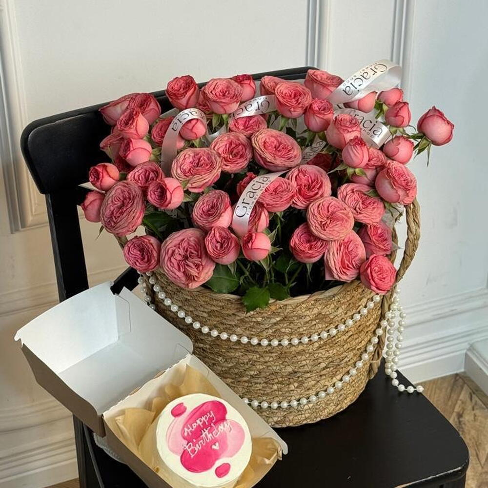 Кустовая роза в кашпо L + бенто торт