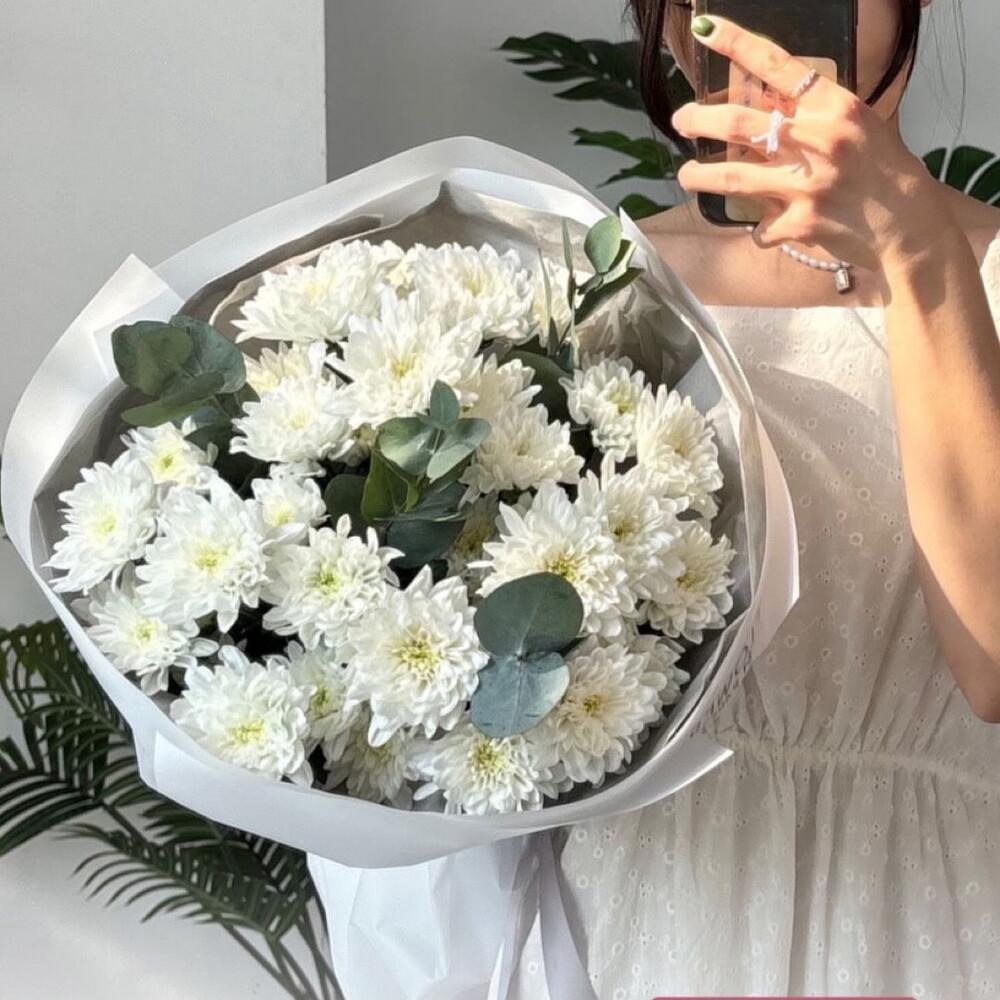Кустовые хризантемы всегда радуют своей стойкостью, потрясающе выглядит вместе с эвкалиптом 😌
