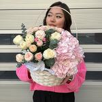 Гортензия - 1 шт. Эвкалипт - 3 шт. Кустовая роза - 5 шт.