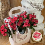 Кустовые розы с бенто тортиком в сумочке