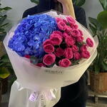 Гортензия - 1 шт. Кустовая роза - 6 шт. Упаковка - 1 шт. Эвкалипт Цинерея - 1 шт.