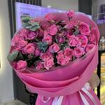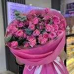 Букет из кустовых роз малинового цвета с добавлением эвкалипта, стойкость до 2х недель