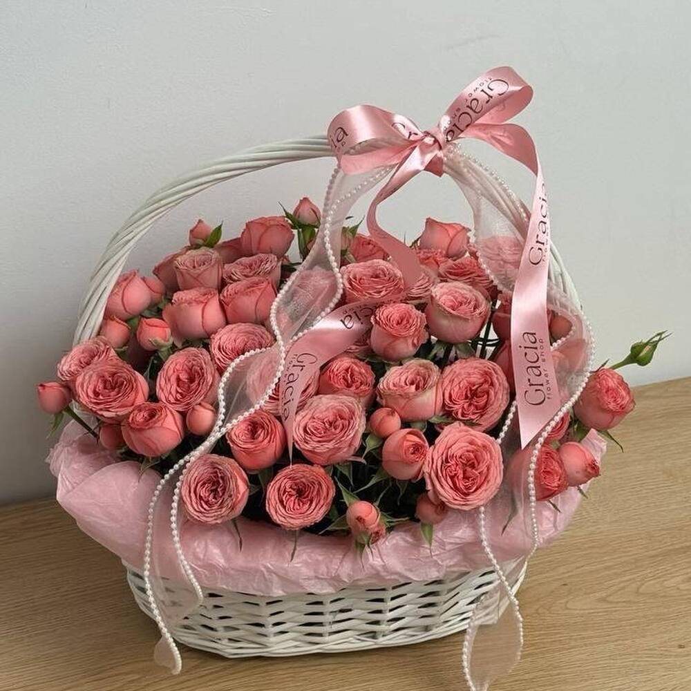 Корзина плетеная - 1 шт. Оазис флористический - 1 шт. хави кустовая роза - 7 шт.