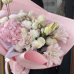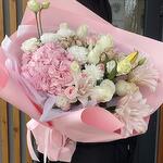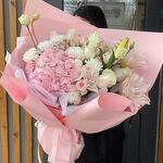 Гортензия - 1 шт. Лилия - 1 шт. Хризантема кустовая - 2 шт. Роза - 7 шт. Кустовая роза - 4 шт. Эустома - 2 шт.