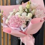 Гортензия - 1 шт. Лилия - 1 шт. Хризантема кустовая - 2 шт. Роза - 7 шт. Кустовая роза - 4 шт. Эустома - 2 шт.