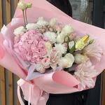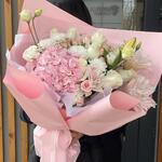 Этот авторский букет будет радовать глаза и сердце своим сочетанием цветов и ароматов. Пышная гортензия объединяется с нежной лилией, окруженной яркими хризантемами. Семь роскошных роз разных оттенков, дополненные четырьмя ветками кустовых роз, создают пышность и объем букета. И, конечно же, утонченные эустома привносят нотку изысканности и элегантности. Этот цветочный шедевр станет прекрасным подарком для любого торжественного события.