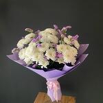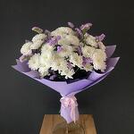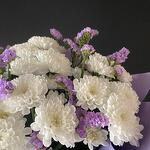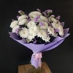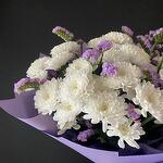 Статица - 3 шт. Хризантема кустовая - 7 шт. Оформление матовая пленка - 1 шт. открытка с вашими пожеланиями - 1 шт.