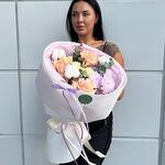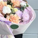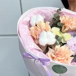 Как прогулка по лавандовому полю — этот букет наполнен спокойствием, нежностью и волшебством. Сиреневые хризантемы, персиковые цветы и хлопок создают воздушную и изысканную композицию. Подарите ощущение уюта и мечты.💜
