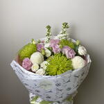 Маттиола - 2 шт. Эустома - 7 шт. момоко - 3 шт. хризантема лайм - 3 шт.