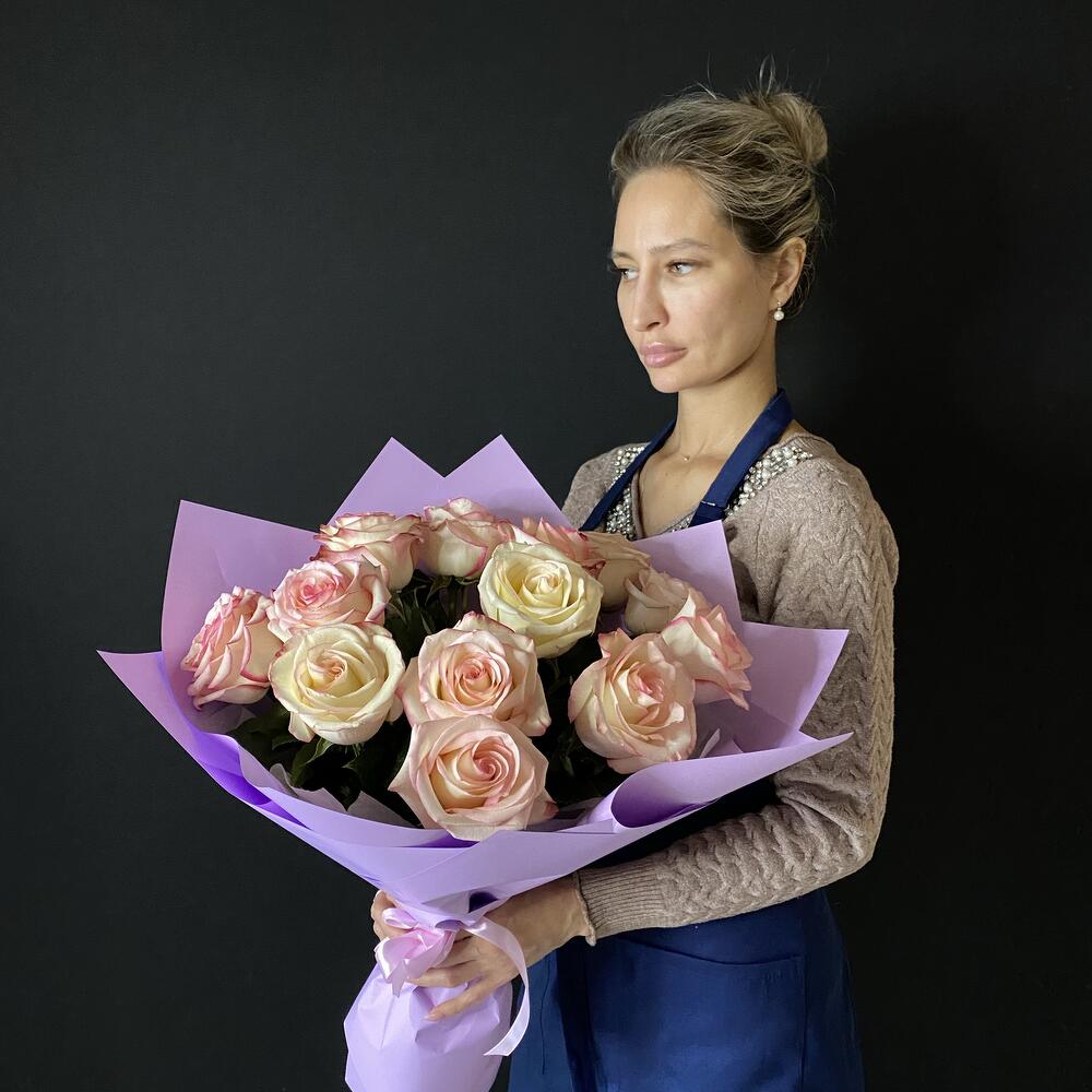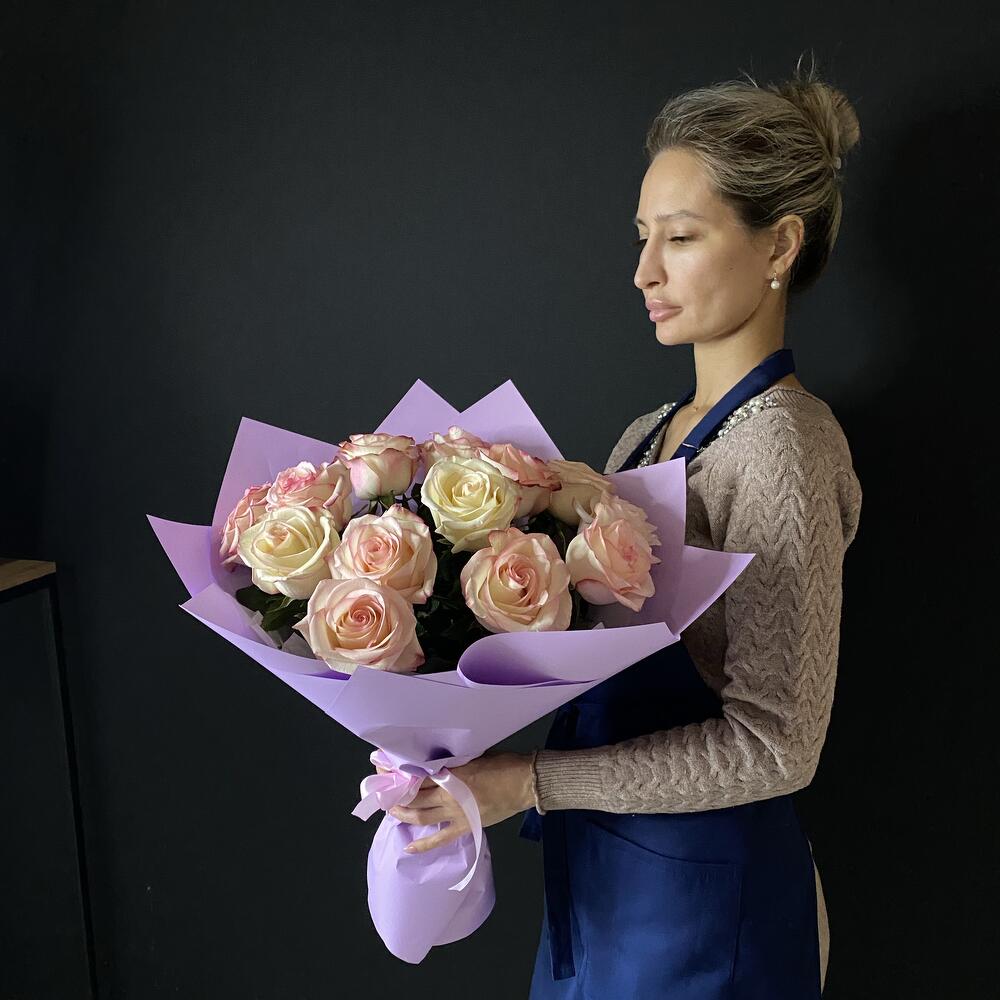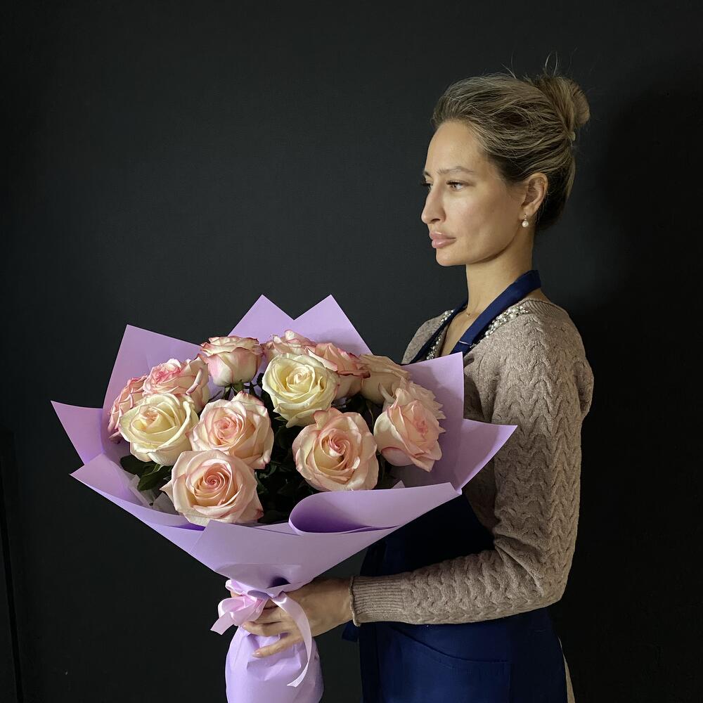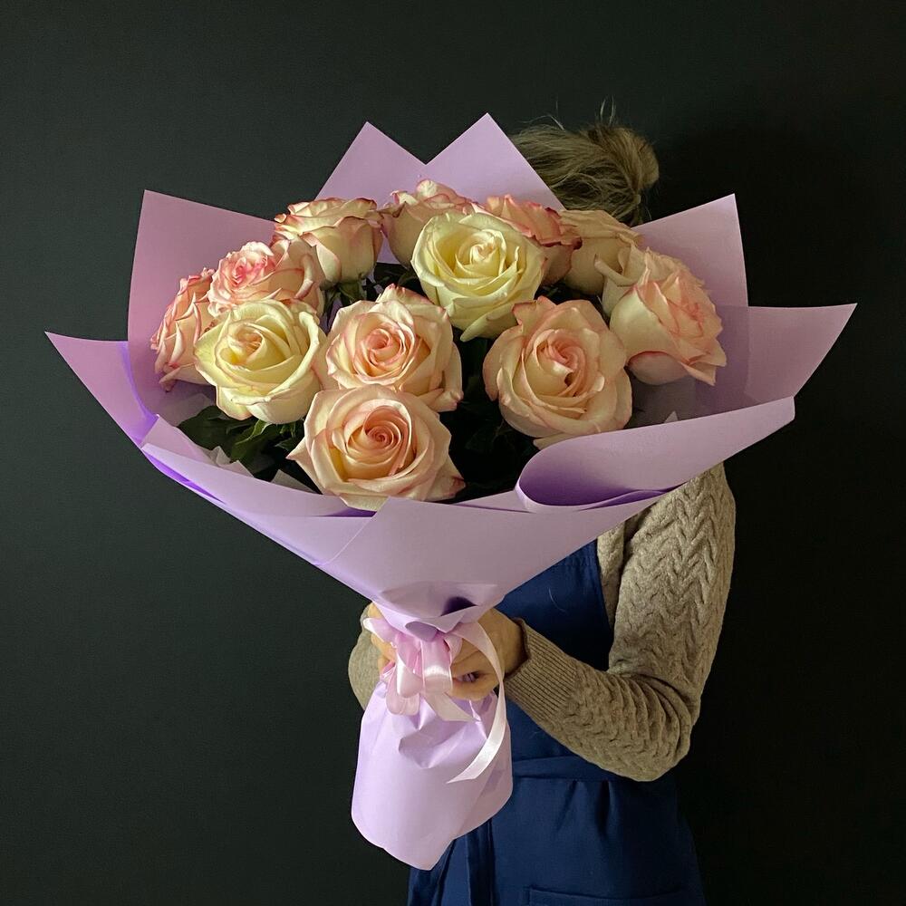 Роза Эквадор - 13 шт. Лента атласная - 2 шт. Оформление - 1 шт. Открыточка с вашими пожеланиями - 1 шт.