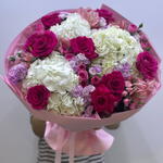 Альстромерия - 5 шт. Гортензия - 4 шт. Диантус кустовой - 7 шт. розы - 9 шт. кустовые розы - 5 шт.