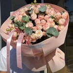 Кустовая роза - 9 шт. Оформление - 1 шт. Эвкалипт Микс - 1 шт.